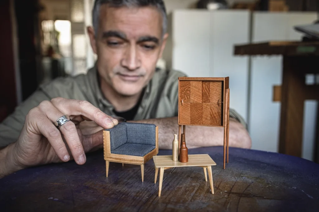Un artesano uruguayo afincado en Barcelona que transforma la madera en pequeñas joyas de diseño a escala 1:12. Piezas pequeñas, con historias grandes.